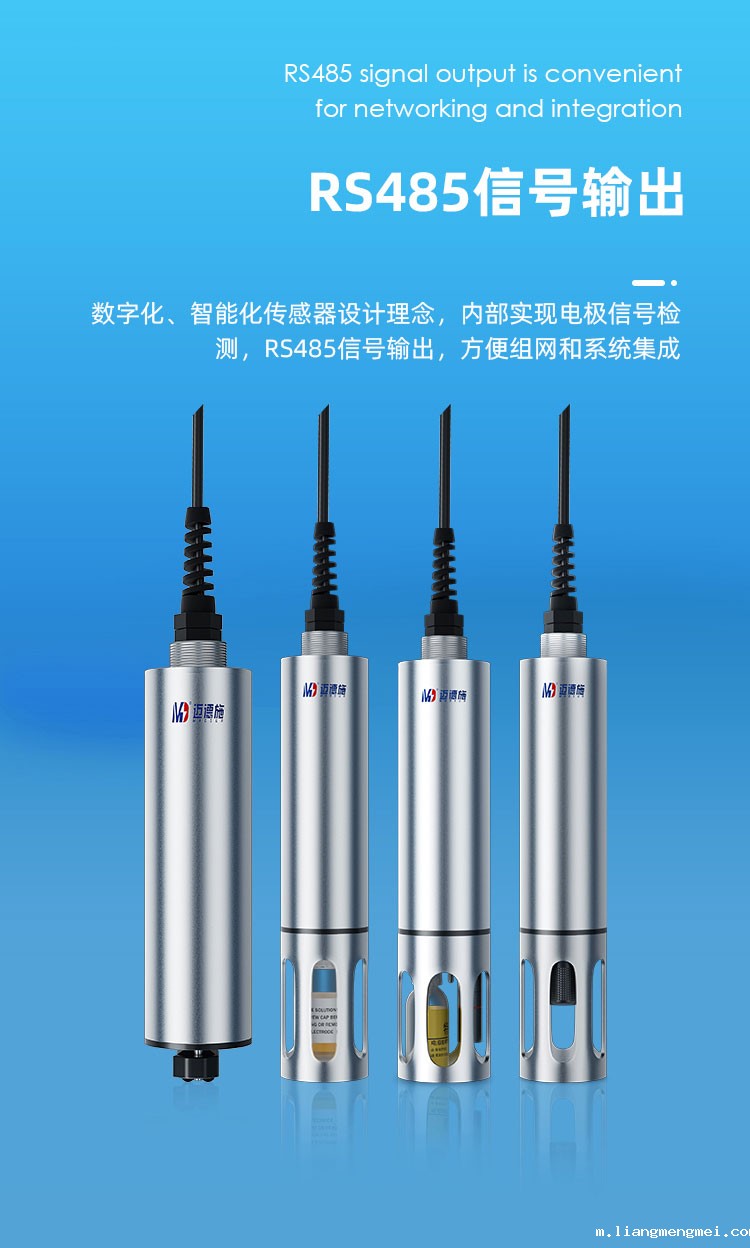 一体化集成设计,采用工业在线电极,数字化、智能化传感器设计理念。仪器内部实现了电极信号检测,温度检测及自动补偿,数字化信号转换等功能。RS485 信号输出,方便组网和系统集成,广泛应用于地表水、污染源等行业。