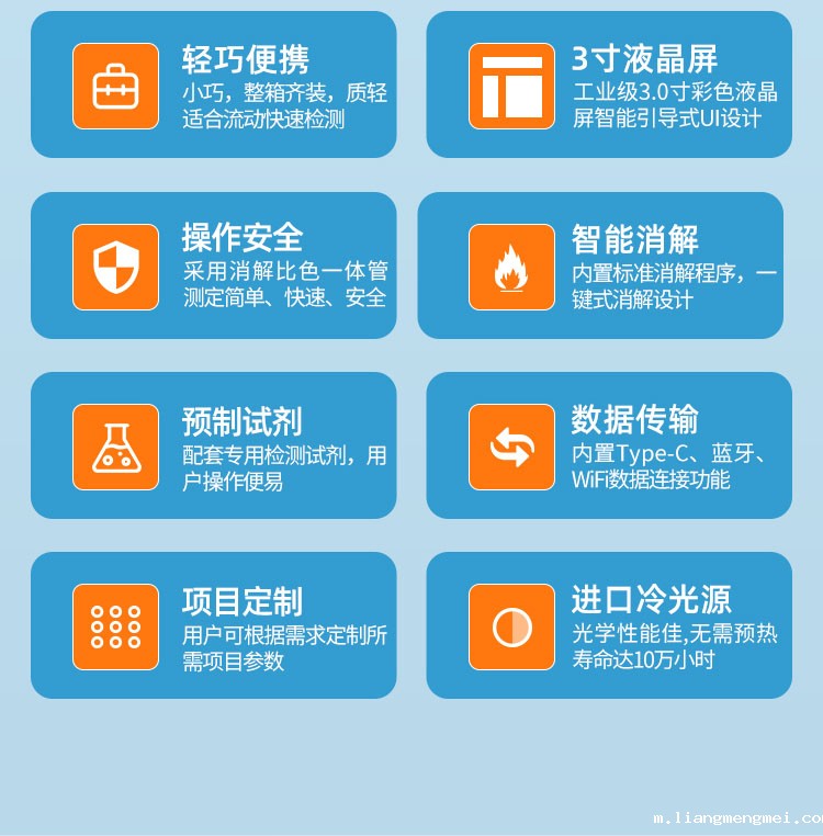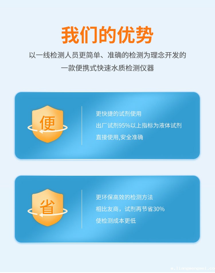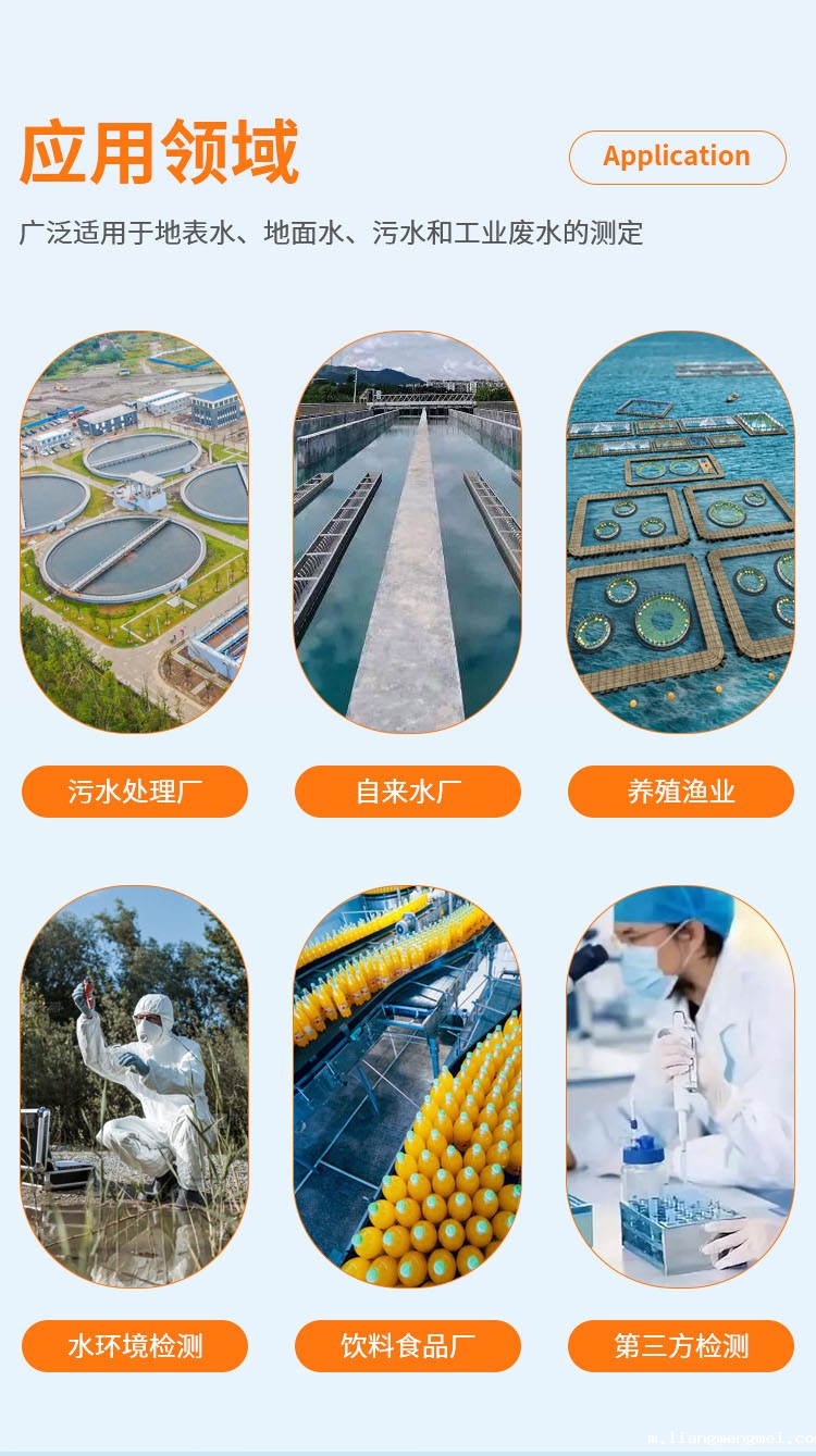 配套成品试剂,让检测更加简单、快速、准确、安全。仪器以其外观设计小巧、检测快速、操作简单、成本低等特点,广泛应用于应急监测、污水处理、化工、制药、医院废水、食品、印染等行业废水检测方面,还可以应用于科研单位、大中专院校等机构的废水研究使用。