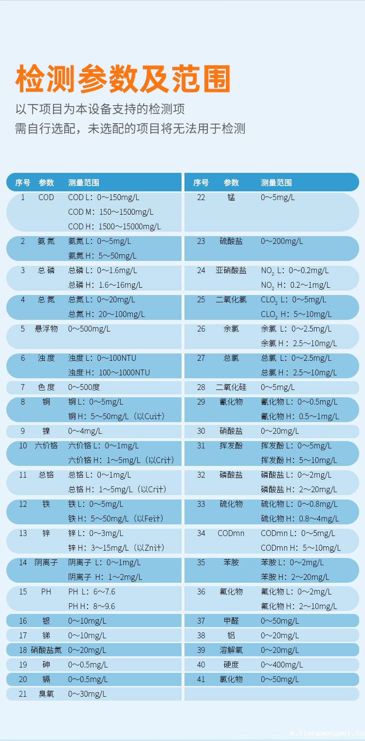 | 测定范围 | 0-50mg/L(分段测定) |